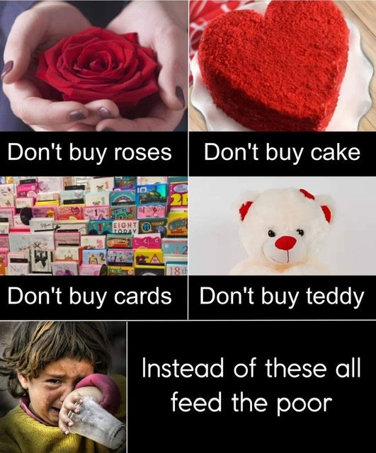 Who’s up for this challenge? Feed the less fortunate instead of spending on Valentines gifts! You have every other day of the year to spoil your partner.